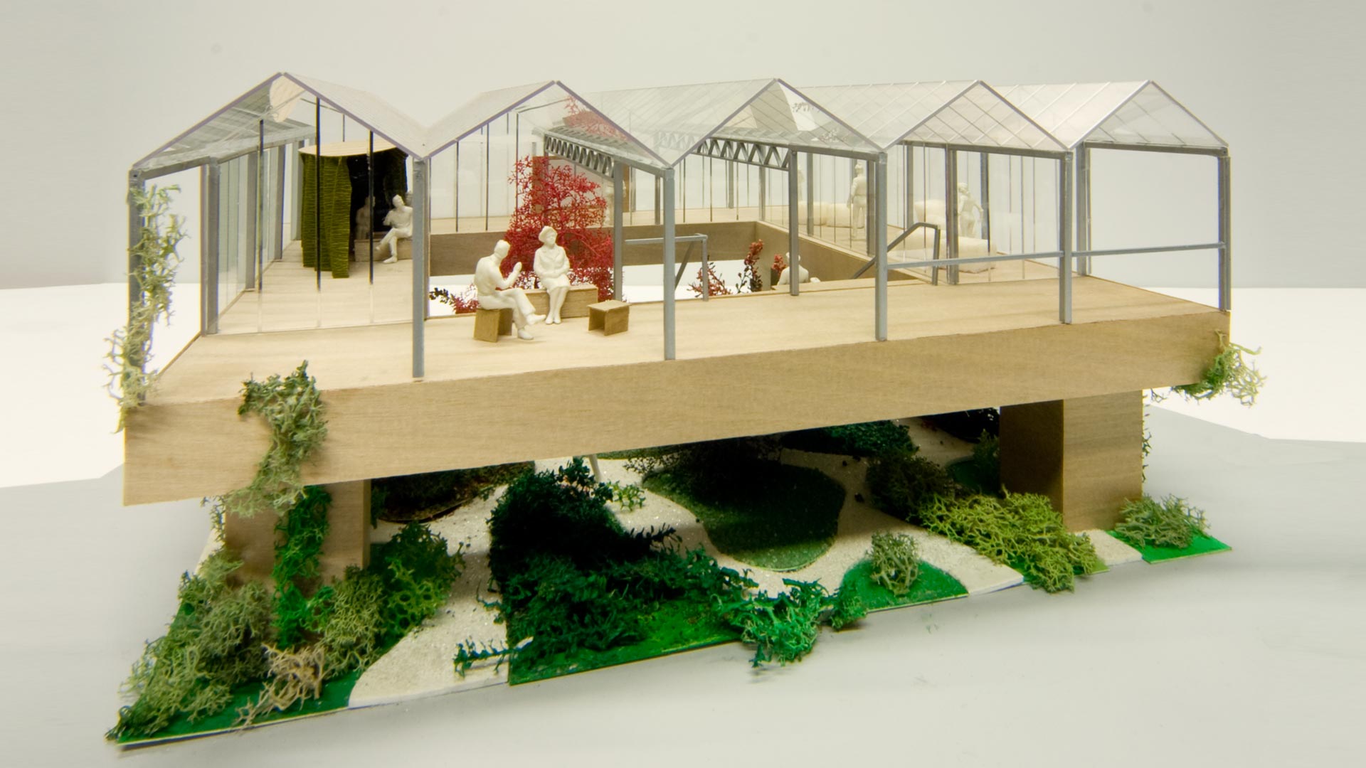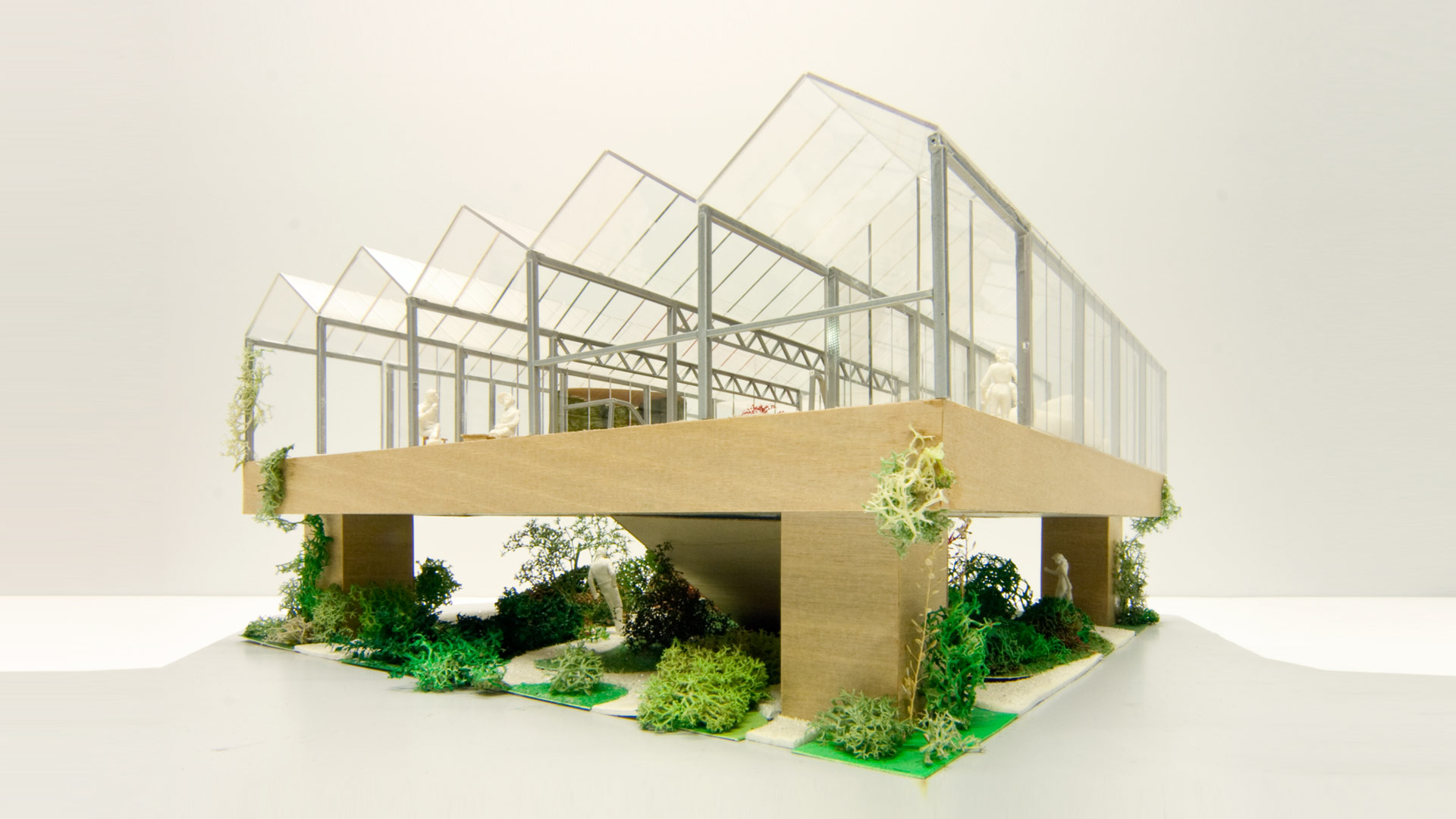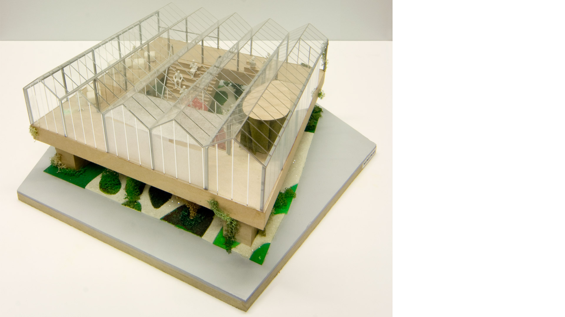 The Fruit Harbour is a typical Rotterdam riverfront location: gray, rough and rugged. In this context, an atypical building would fit right in: a greenhouse on legs, a sturdy platform covered with a greenhouse structure and containing a central oasis of fruit trees.