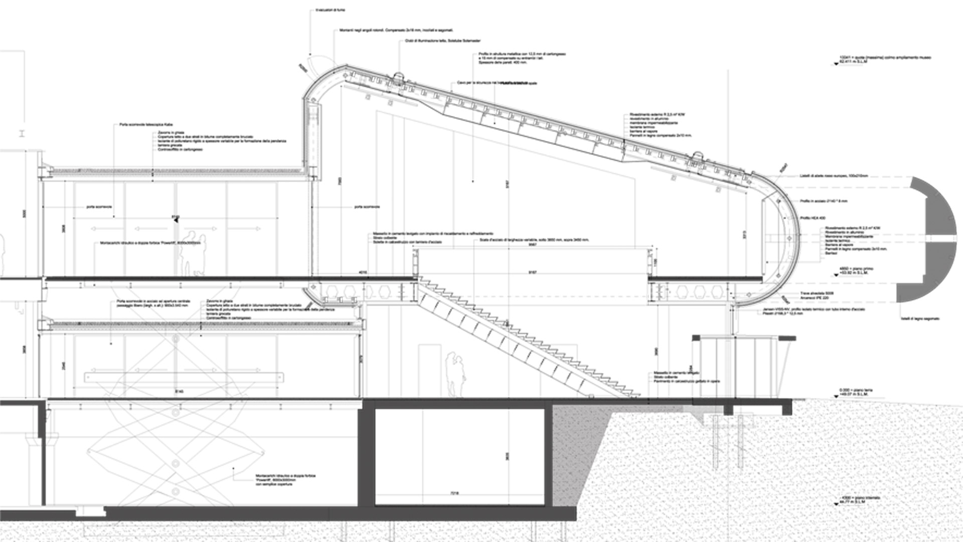 The art center is one of the few museums in Italy dedicated to contemporary art and possesses a magnificent collection which, because of a lack of exhibition space, was stored in various depots. In order to display these works of art, it was decided to double the exhibition area.