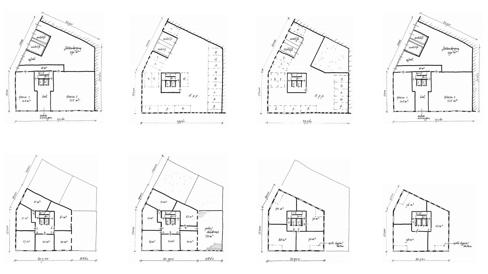 The small apartments (12 units) have a shared garden of 130 sqm. The large (48 pieces) and luxury apartments (8 pieces) have a loggia or terrace / balcony. All apartments on the ground floor and a shared bicycle storage. The plan meets the high-rise regulation that sets stringent requirements on escape routes from each floor through a safe flight staircase.