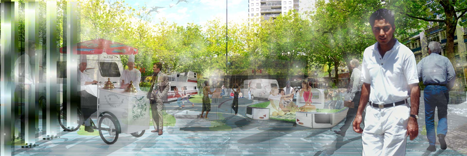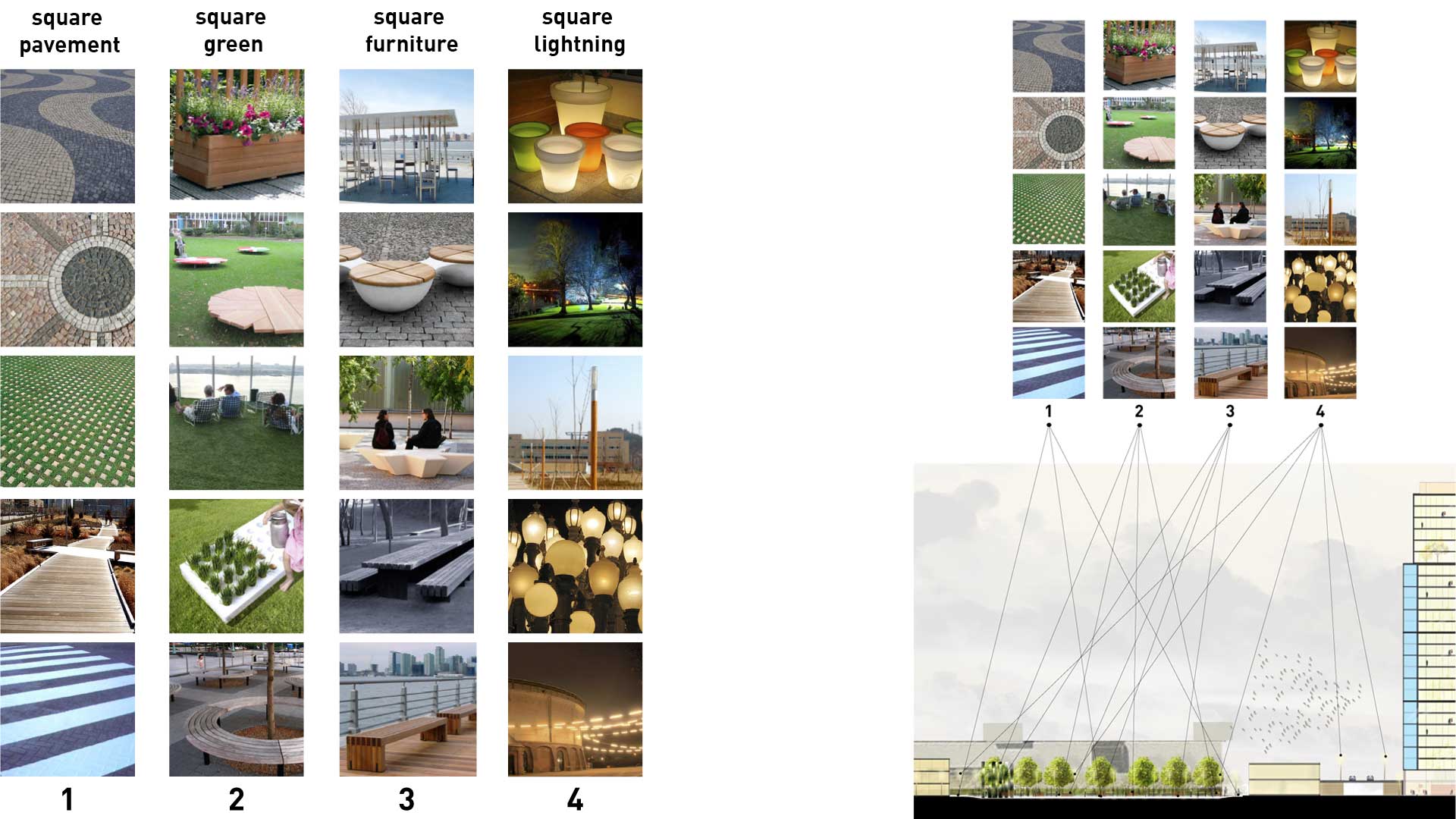 In order to improve the square and give it a clearer character, the draft design proposes reusing the square and adding accents.